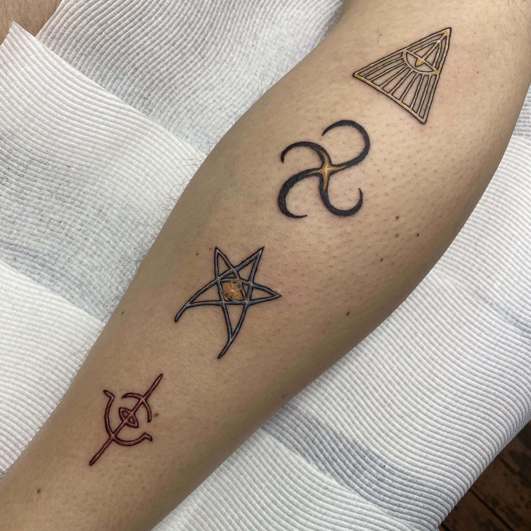 Made with my tattoo artist own desings for the Beast runes and still