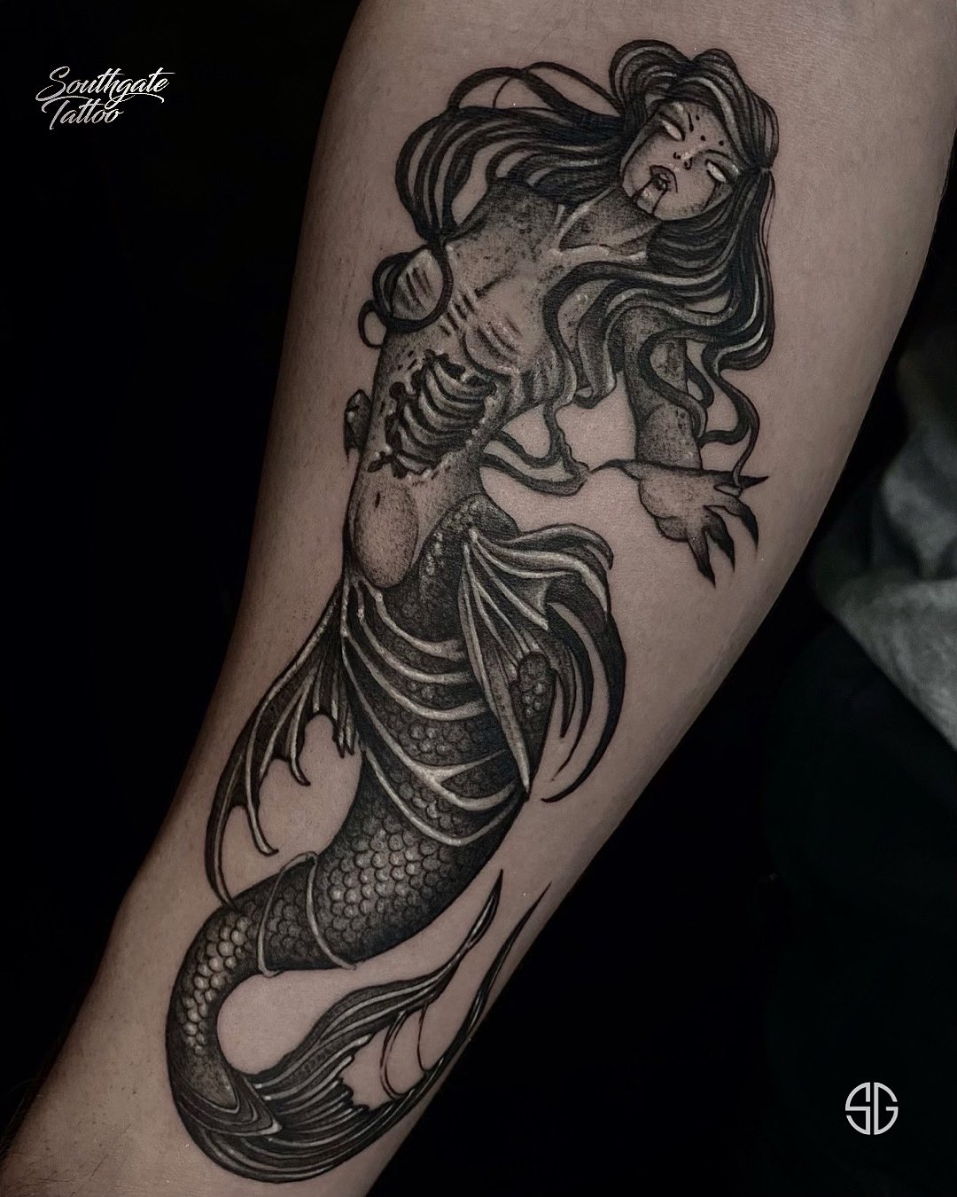 Top more than 53 gothic mermaid tattoos super hot in.cdgdbentre