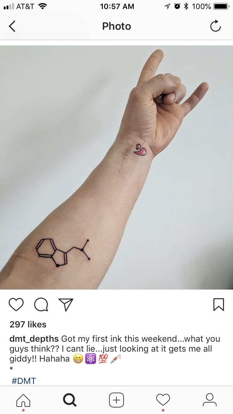 See more ideas about molecule tattoo, tattoos, serotonin tattoo. Parts of the structure of dmt occur within some important biomolecules like serotonin and melatonin, making them structural analogs of. Discover unique and creative dmt tattoo ideas with our ai assistant.